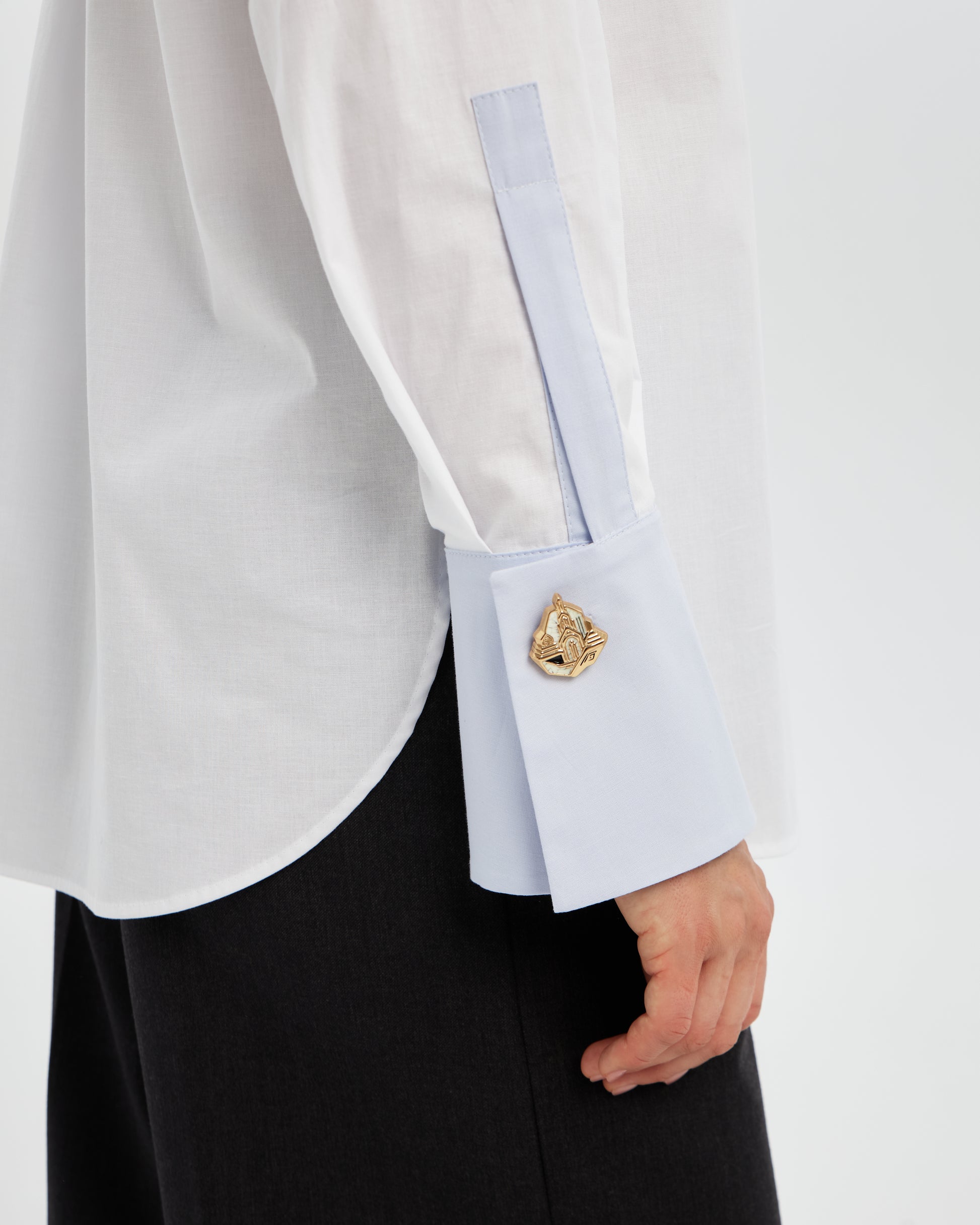 The LINEA shirt can be worn at the office with tailored trousers or for an evening out with a pencil skirt. Its minimalist design makes it an essential piece of your wardrobe, perfect for the modern woman seeking the balance between simplicity and refinement.